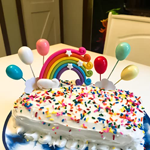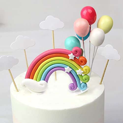 Taartdecoratie voor meisjes: Cake Topper wordt geleverd met inzetstokken. Inclusief 1 x regenboogbrug, 6 x ballonnen, 5 x wolken taarttopper, 1 x Happy Birthday minibanner, past het beste op taarten van 15 tot 20 cm.