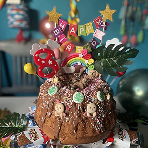 Veilige en herbruikbare materialen: de Happy Birthday-topper bestaat uit oneetbaar materiaal, dat licht en extreem duurzaam is. De regenboog bestaat uit zachte klei, de wolken zijn gemaakt van karton, de ballonnen zijn gemaakt van schuim, veilig en licht.