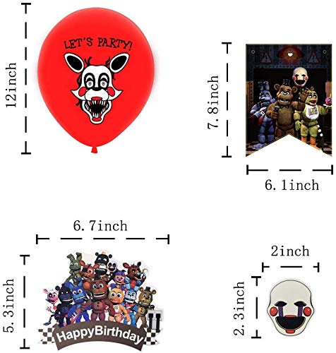 Specification: Anjinguang Five Nights at Fre–Ddy’s verjaardagsfeestartikelen set, vijf nachten bij Fre–ddy verjaardagsbanner, ballonnen, taarttopper, vijf nachten bij Freddy themafeestdecoraties voor kinderen