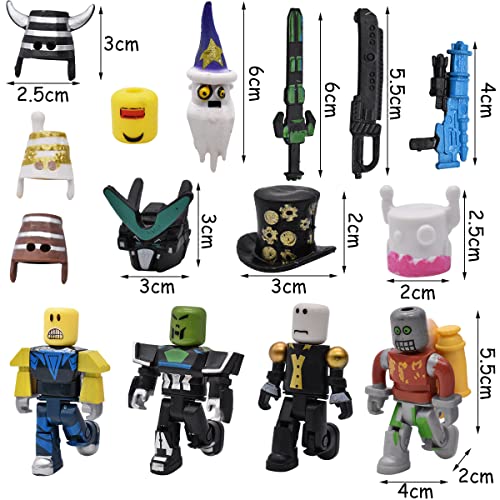 16 stuks Mini Roblox Cake Toppers Kit: De Roblox figuren cake toppers set bevat 4 stuks Roblox taarttoppers, 7 stuks helm-cupcake-decoraties, 2 stuks zware taartdecoraties, 1 stuk waterpistolen taarttopper, 2 stuks kleine onderdelen taartdecoraties.