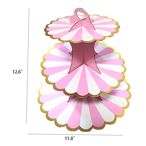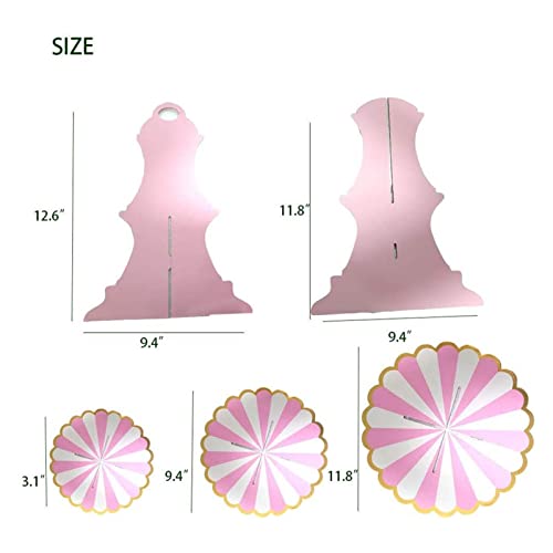Modieus ontwerp: klassiek roze en wit snoep Aardpatroon, gouden randontwerp, drielaags cirkelvormig snoeppaneel, zeer geschikt voor babydouche, verjaardag Feest, bruiloft bruids doop, snoepfeest, Hawaï, Thanksgiving, Kerstmis, enz., Nieuwjaarsavond feestdecoraties