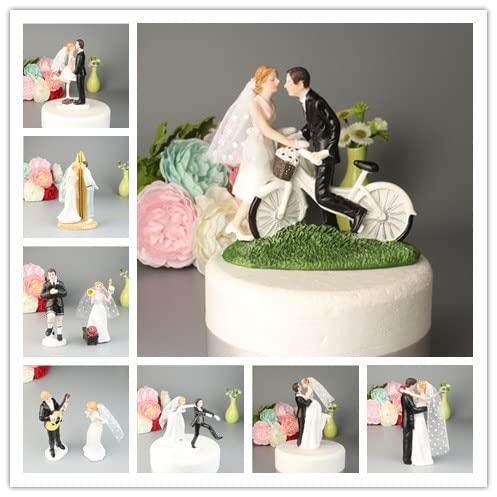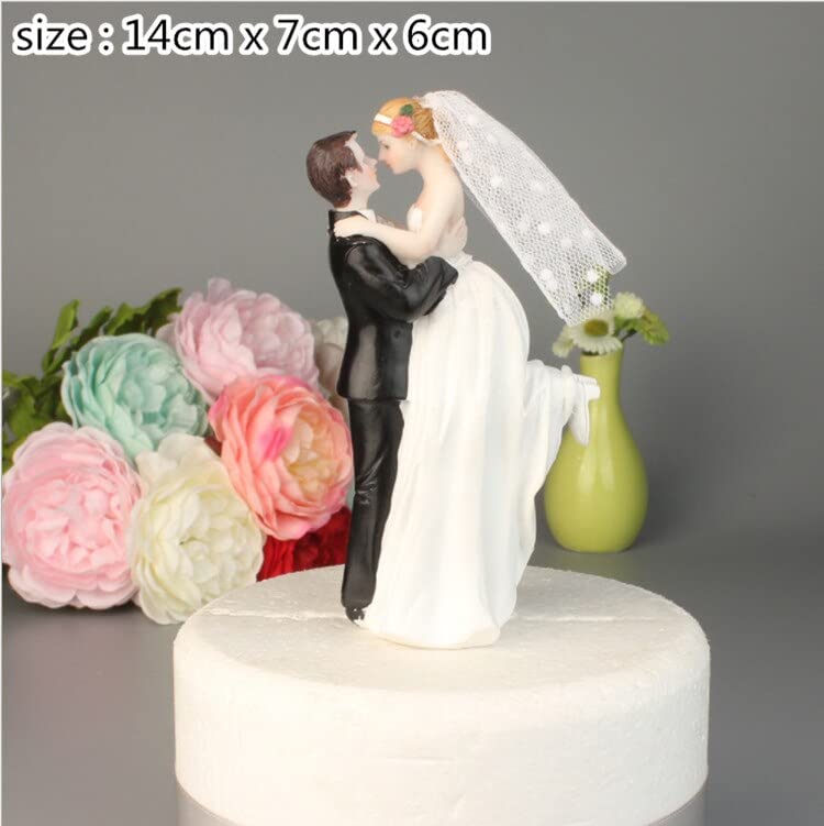yishi Gemengde stijl bruid en bruidegom bruidstaart Topper beeldjes met kant decoratie betrokkenheid/verjaardag/douchegift (kleur: helder)
